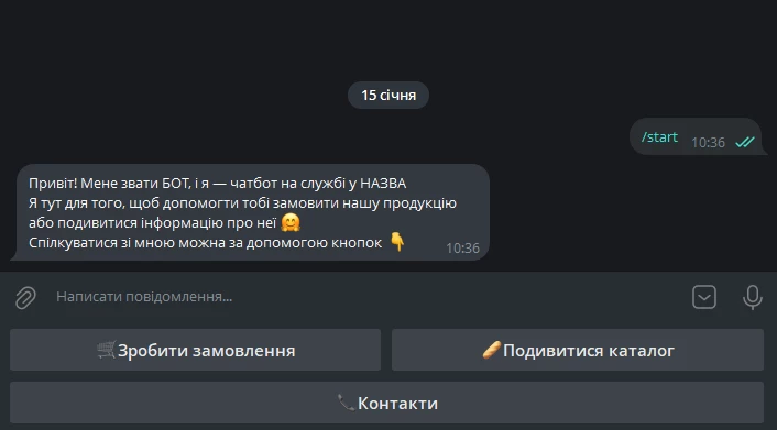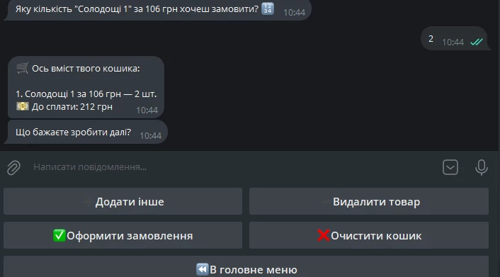 A Telegram bot with an administrative panel was developed for the client, allowing for the automation of order intake, product catalog management, and request processing without operator involvement. The solution is designed for fast customer service and easy management for the business.