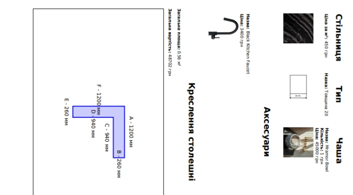 The algorithm accurately calculates the area of complex shapes, taking into account material thickness, edge cost, accessories, and forms the final price automatically without manual intervention.